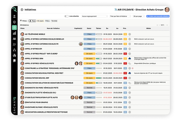 Les projets menés par les équipes Achats ont un impact fort sur les marges, les risques, la conformité, mais ils restent souvent peu lisibles. Vous vous retrouvez à devoir arbitrer sur des budgets ou des priorités sans visibilité claire sur les engagements pris ni les résultats attendus.